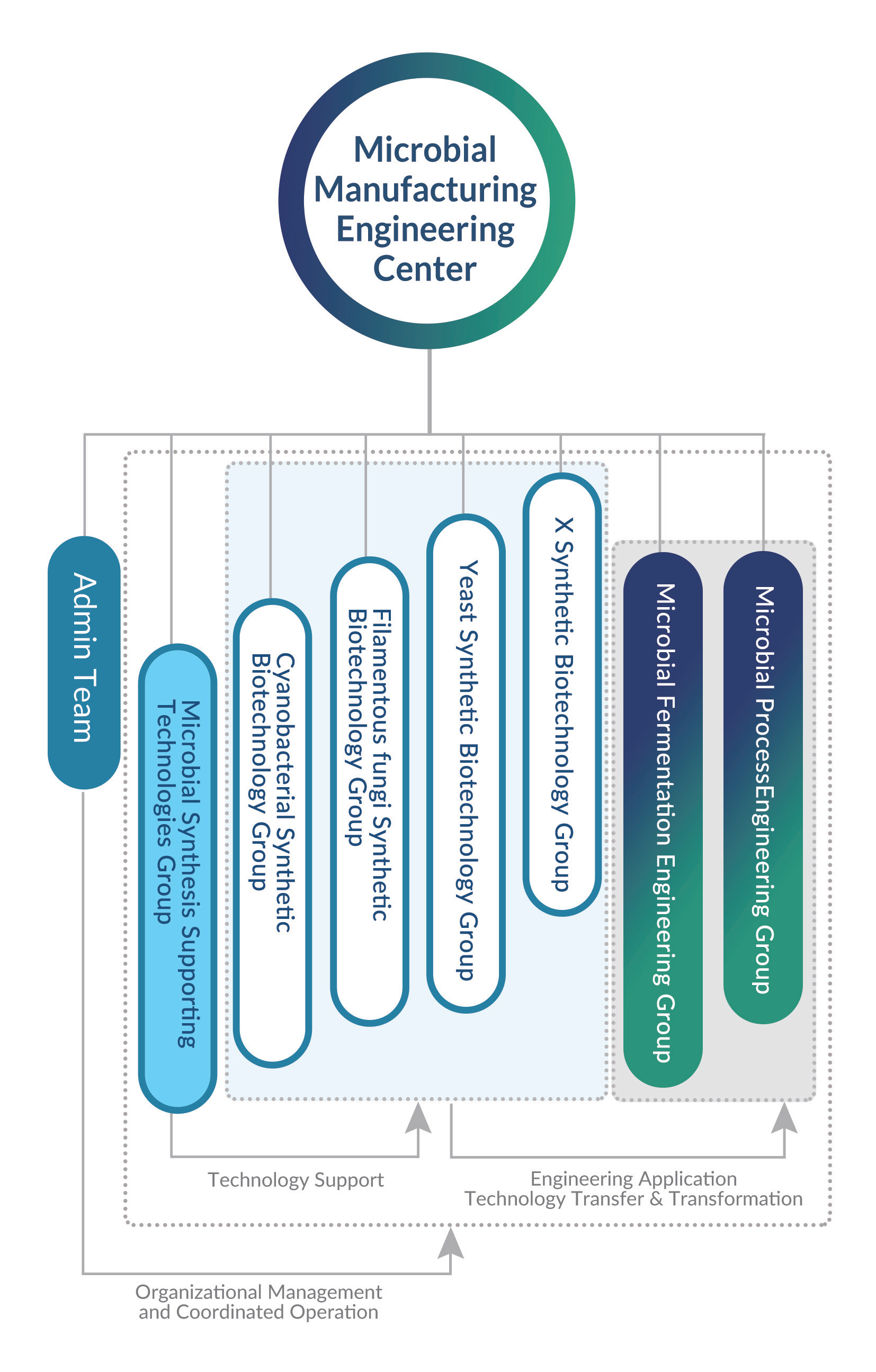 The Microbial Manufacturing Engineering center mainly takes cyanobacteria, filamentous fungi, yeast, and enzymes as materials and platforms. The approaches of metabolic engineering, genetics, natural products chemistry, bioinformatics, and et al. were combinatorically utilized to remove the bottlenecks of microbial green biomanufacturing on the scales of germplasm resource, mechanisms, technologies, and industrial process.